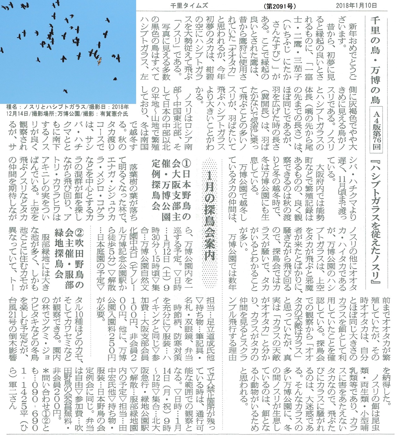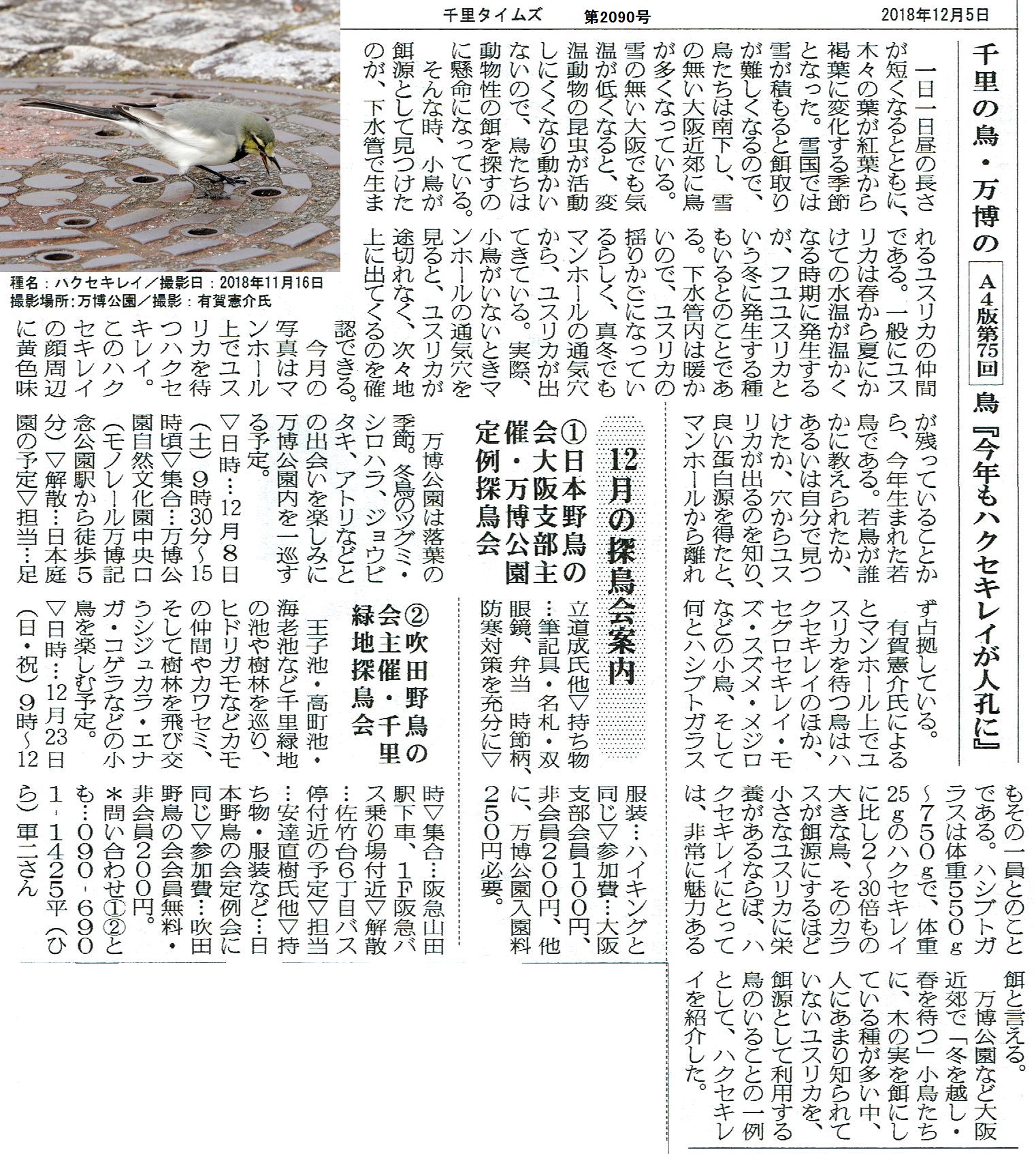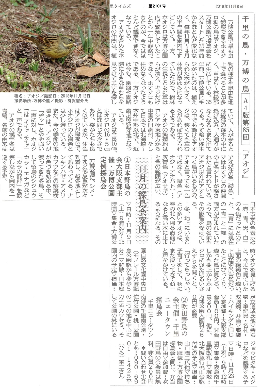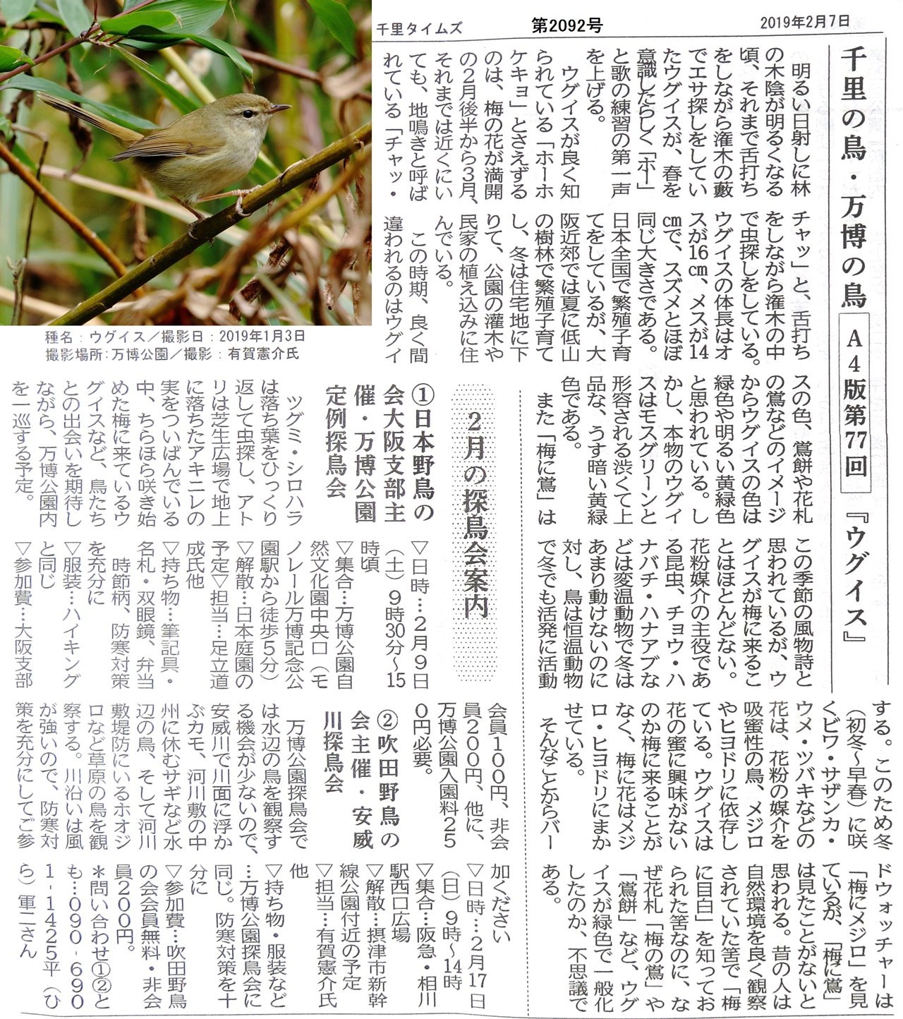 「万博公園」定例探鳥会のお誘い