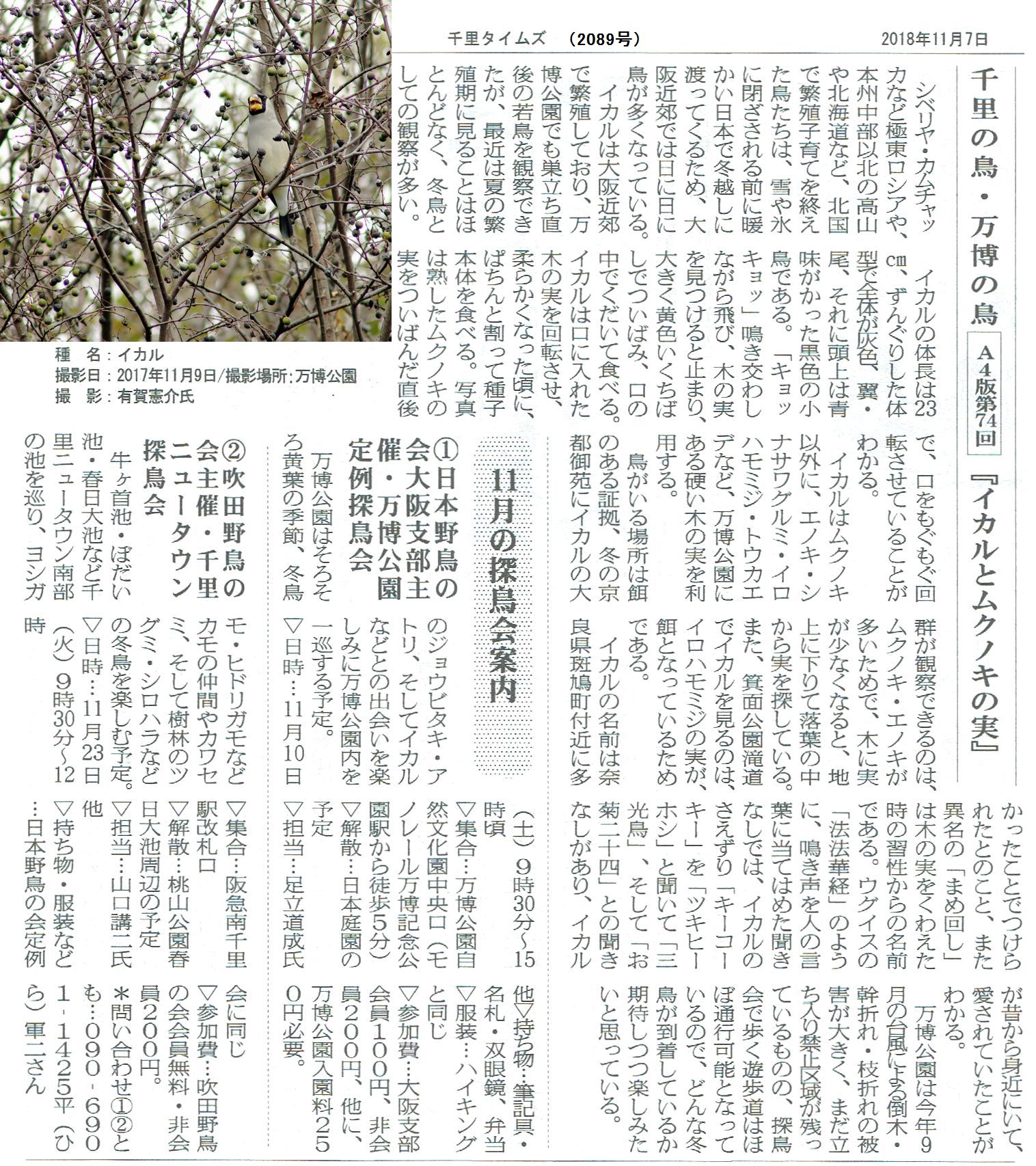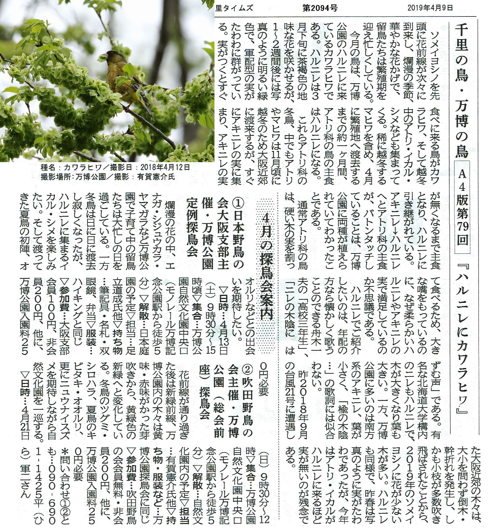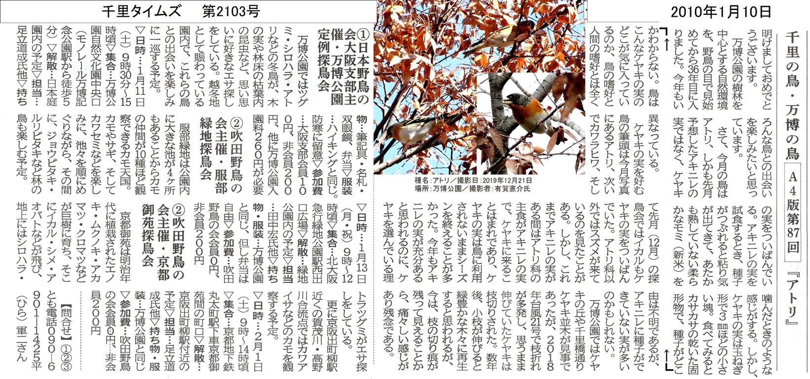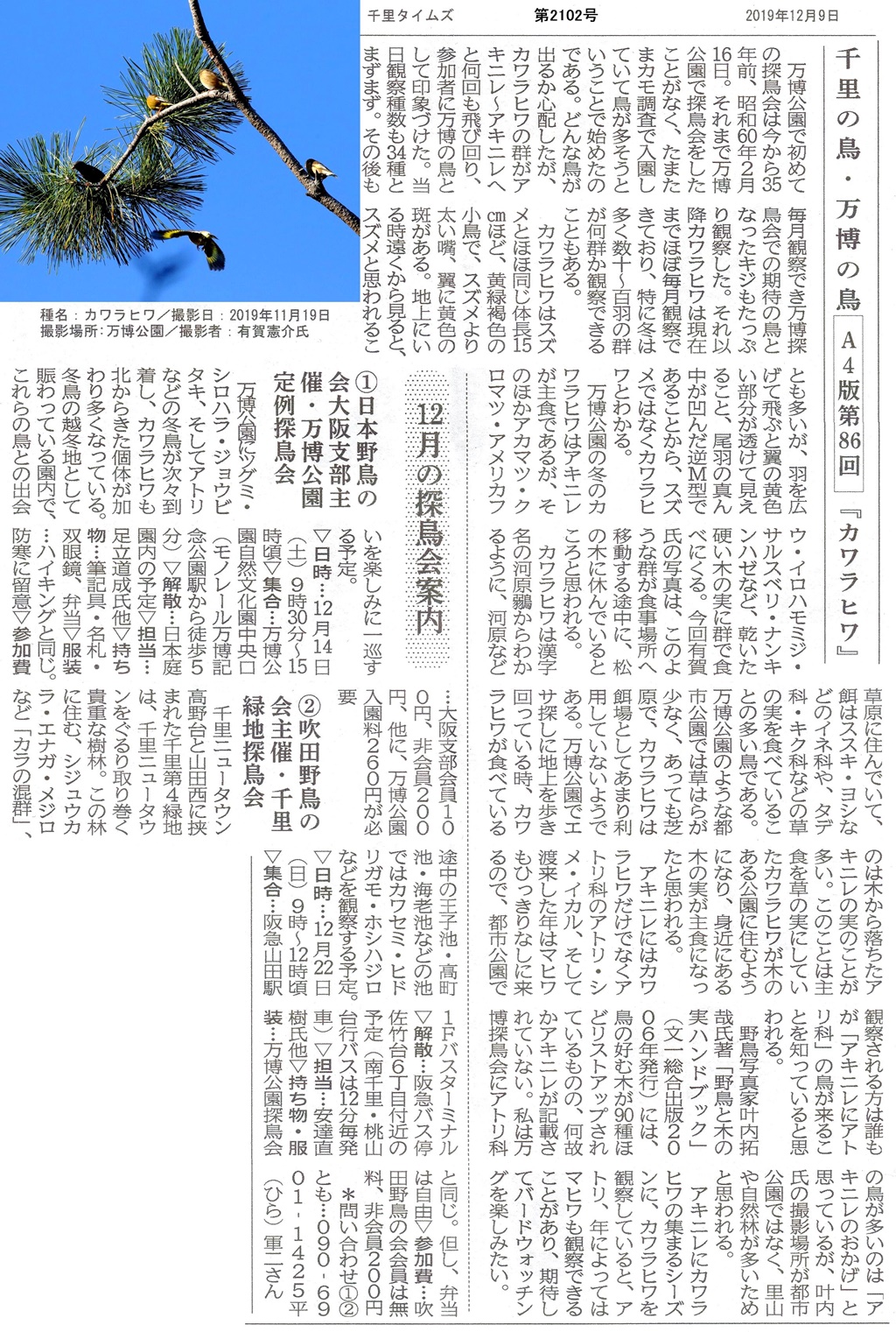 「万博公園」定例探鳥会のお誘い