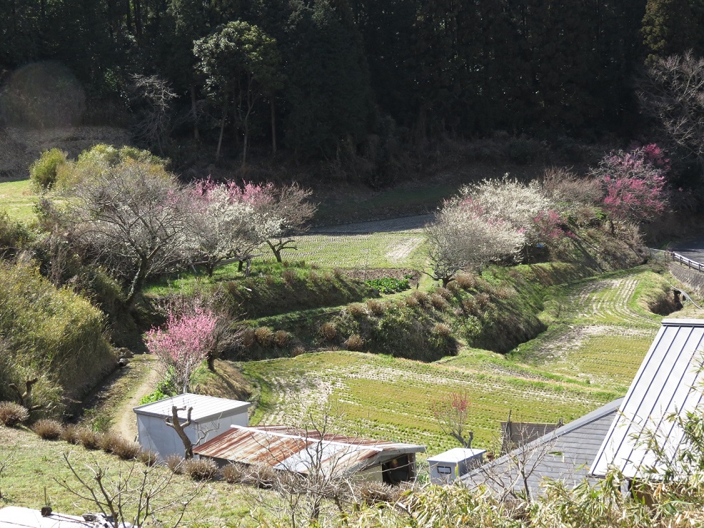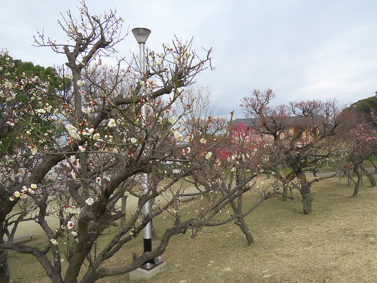 予報通りの快晴。ウメ輪紋ウイルスに感染して今年限りの梅林を鑑賞。
