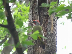 - 最後の下り道では間近で鳴いて、ドラミングをするアオゲラを観察できた。