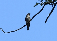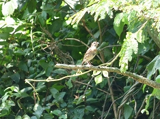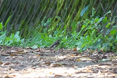 - オオルリと思われるゴマ斑模様の幼鳥が路上で採餌していた。