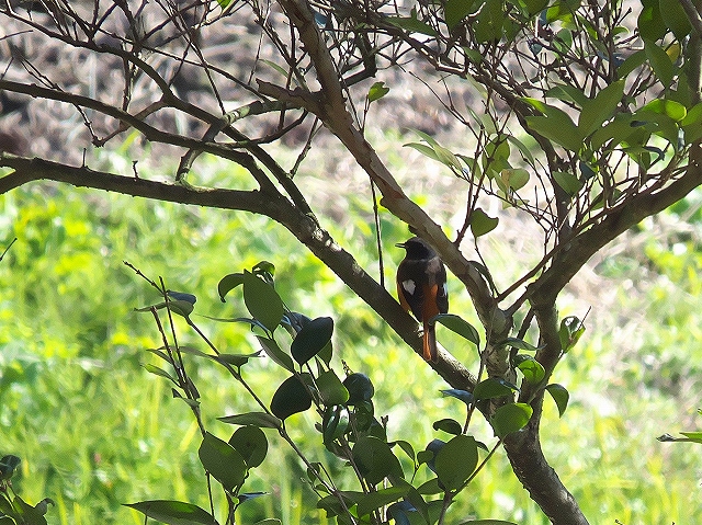 - 病気で伐採された梅林跡近くでトラツグミとルリビタキ♂。