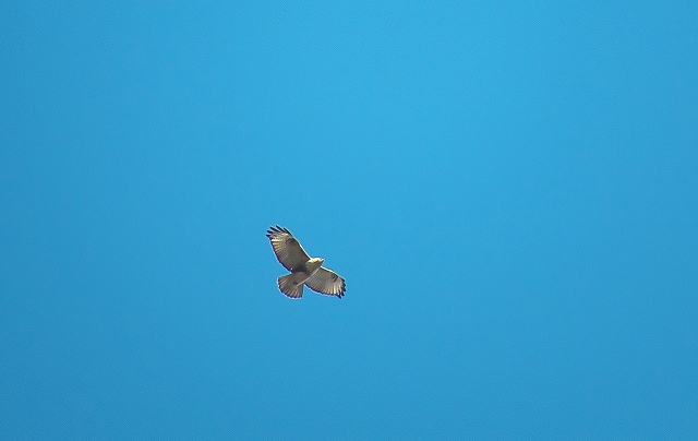 - ノスリが数度、寒空をホバリング。