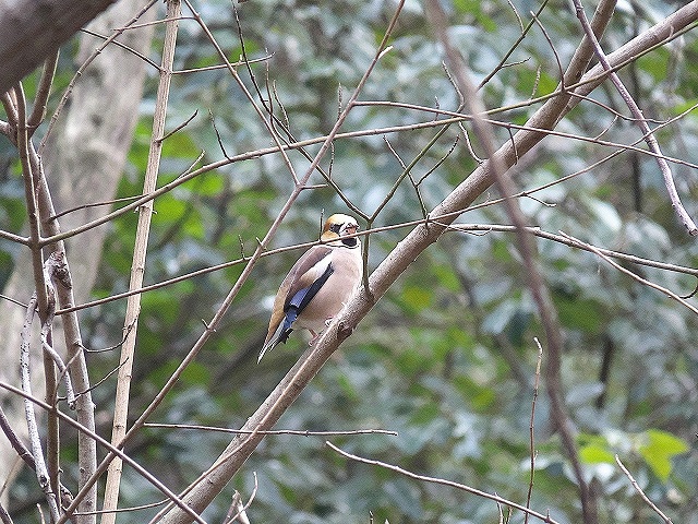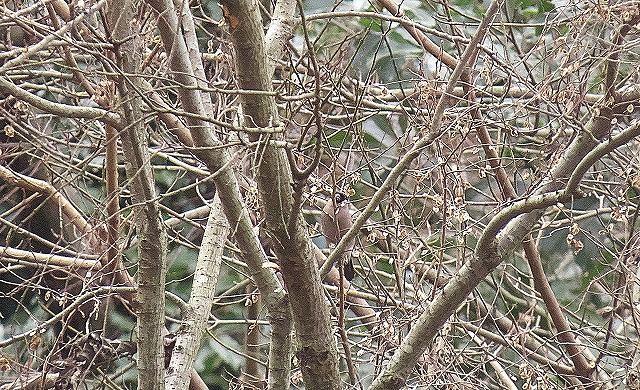 - 集合時、イカルの群れにシメが混じる。