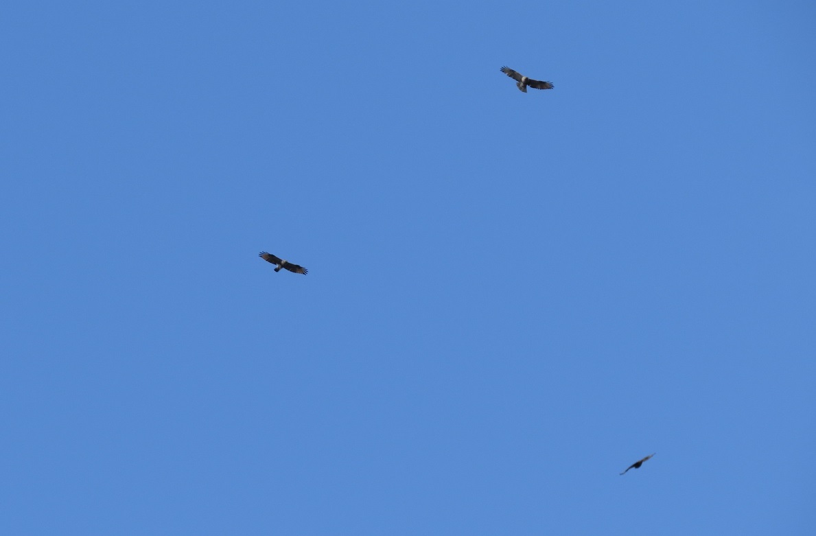 - 下山途中で真上を旋回するノスリ3羽を全員で確認して締めくくった。