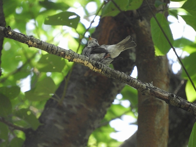葉っぱが生い茂る中、スタート直後にオオルリ幼鳥。