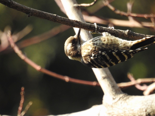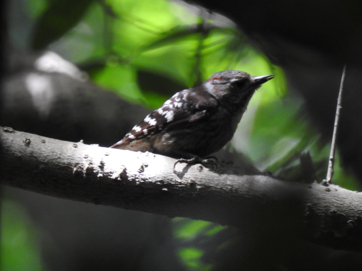途中の休憩ポイントで頭部の赤い部分が良く見えるコゲラの幼鳥と出会う。
