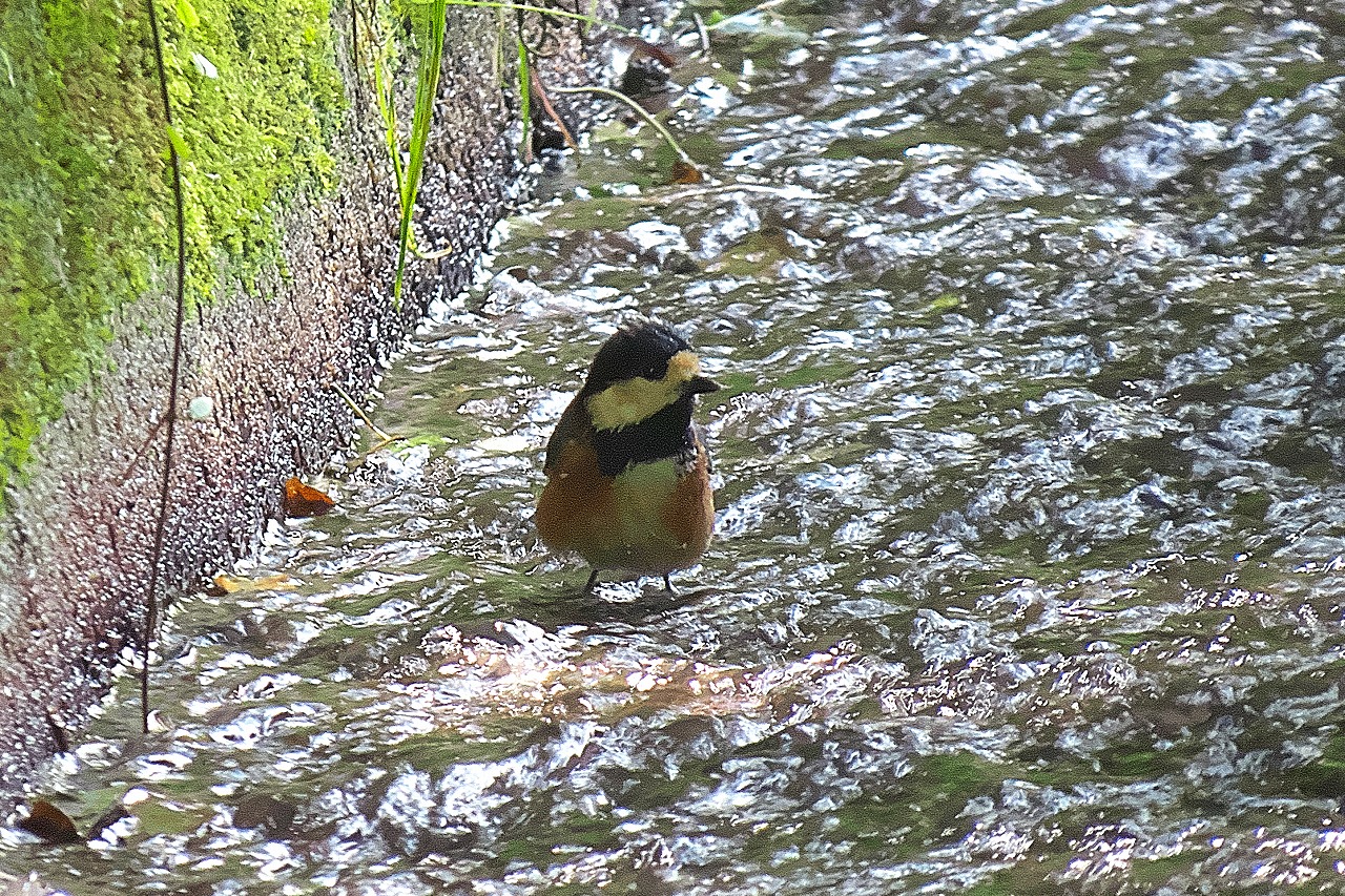 ホオジロとヤマガラの若鳥が水浴びをするところに出会えた。