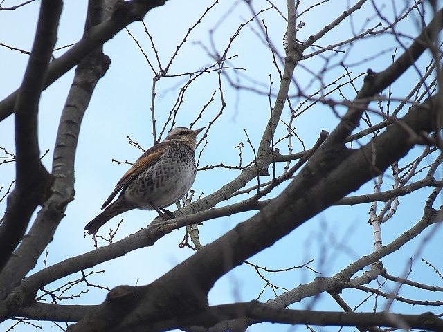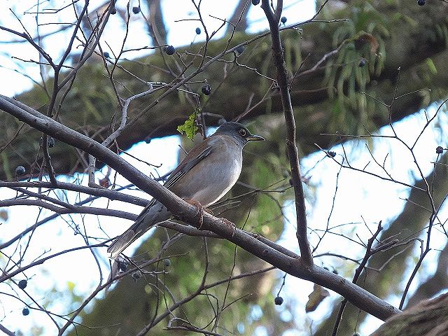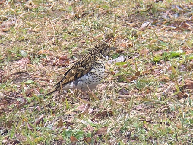 冷え込んだ空気の中、梅林跡でトラツグミとツグミをじっくり観察。