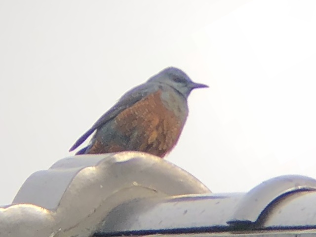 神社裏ではルリビタキ。上空ではカラスに追われるオオタカ。民家の屋根にはイソヒヨドリ。