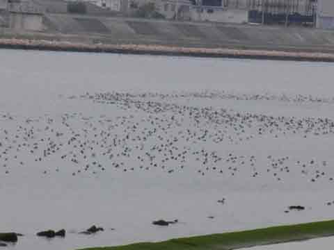 - しかし、神崎川河口付近では久しぶりに多くのカモ類が飛来しており、参加者一同を喜ばせてくれた。