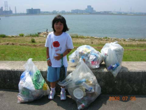 - じっとしているだけで、汗が噴出すような中、小2の女の子もゴミ拾いを手伝ってくれた。蒸し暑い中、参加していただいた皆さんお疲れ様でした。