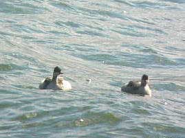 - カモの数は先月よりも増えている。その数凡そ400羽位。スズガモが優先種。カンムリカイツブリの数も増え、ハジロカイツブリも混ざっている。