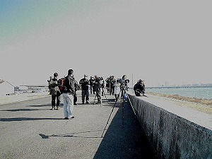 - 天候も良く、穏やかな探鳥会日和だった。新年幸先の良いスタートが切れた。カモ類は種数はそろっているが、個体数は少ない。猛禽類が3種出、ミサゴが3羽一度に観察できた。これは私にとっては初めての経験で、参加者にとっても嬉しいことであった。