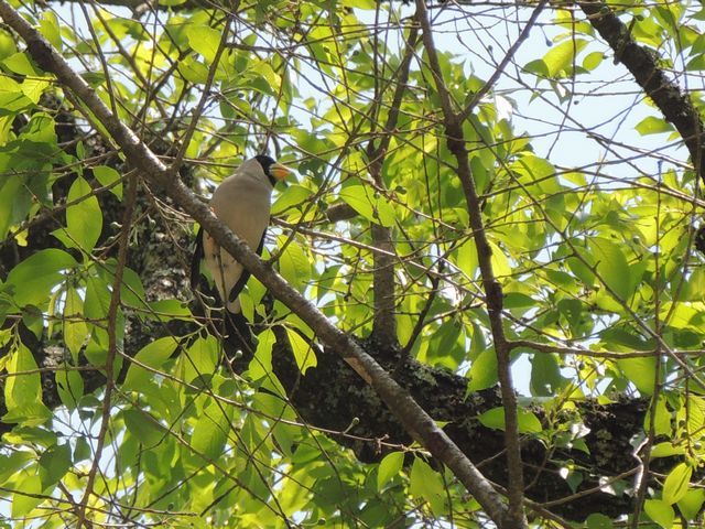 - 出発当初は鳥の鳴き声も姿も無く、今日は?と考え始めた時に、サンコウチョウの鳴き声がし、探していると雄と雌が飛んできた。