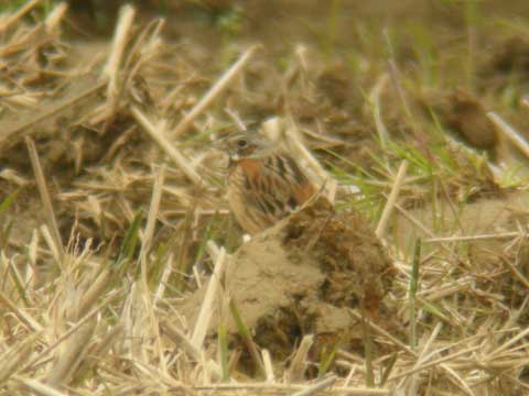 満開の桜の花の下、ウグイスに混じり冬鳥のアオジのさえずりが聞こえてきた。農耕地では、ヒバリやケリが鳴く中、先月見たホオアカが今回も姿を見せた。夏鳥のツバメが飛び回り、里山はそろそろ冬鳥との交代時期。オオタカがゆっくりとしたはばたきを交えながら上空を旋回していた。