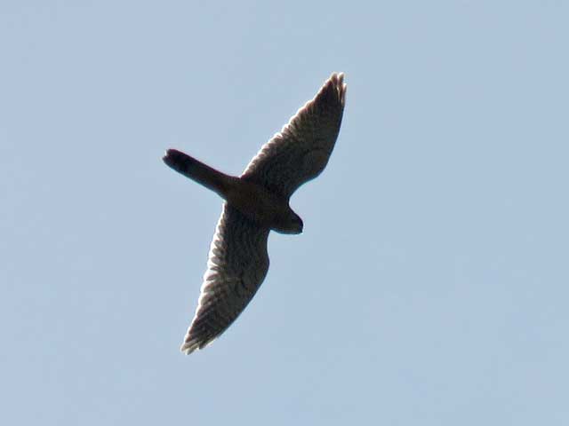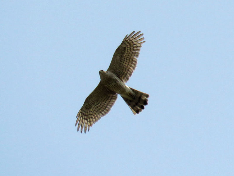 農地でハイタカが旋回上昇し滑空。
