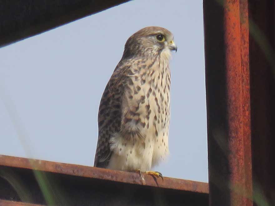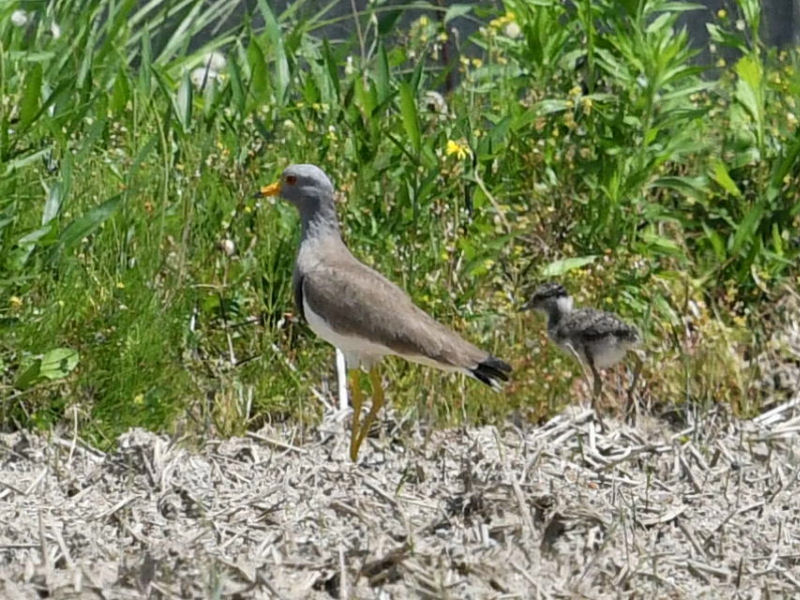 途中休憩したコスモス館では、ケリの若鳥や、上空を旋回するハヤブサを観察。