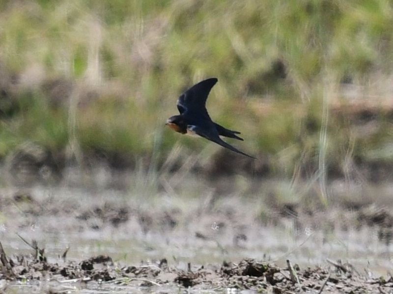 農耕地では、稲田の上を飛び交うコシアカツバメや、旅鳥のノビタキを観察。