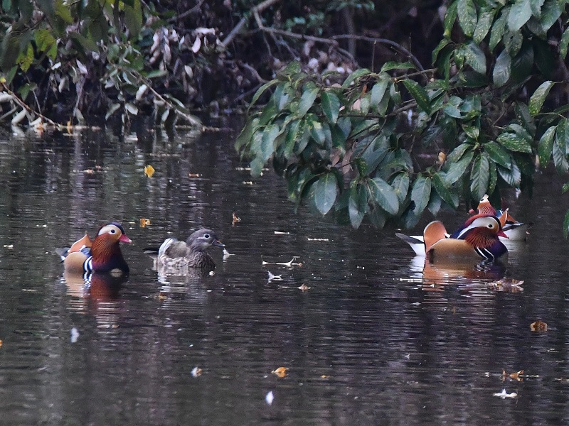 内河池ではオシドリ数羽が出現。