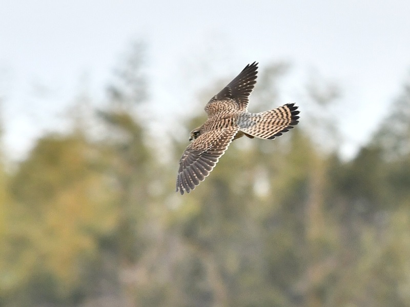 途中休憩したコスモス館上空を、ホバリングを交えながらチョウゲンボウが通過。