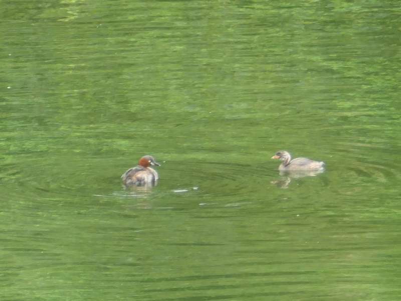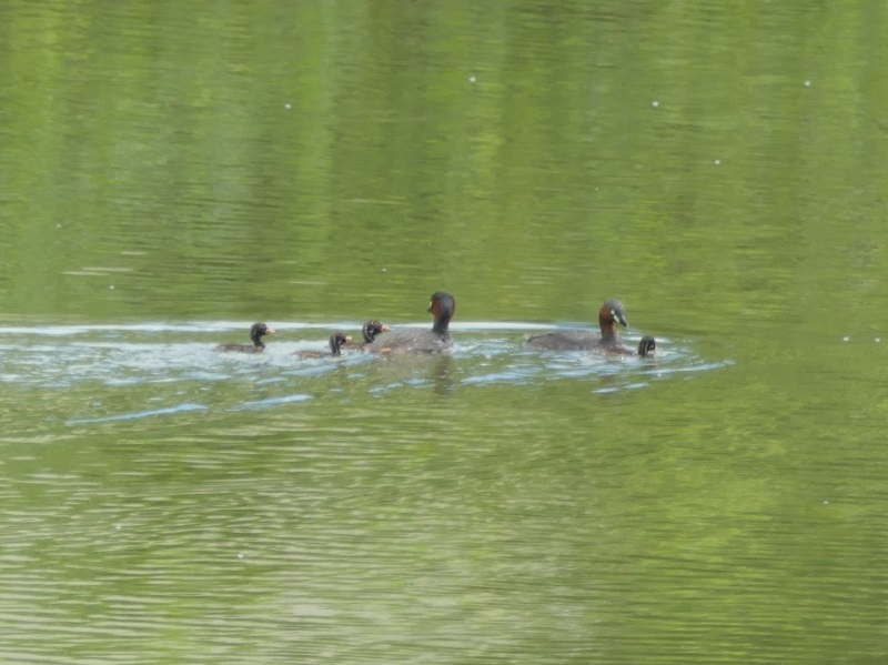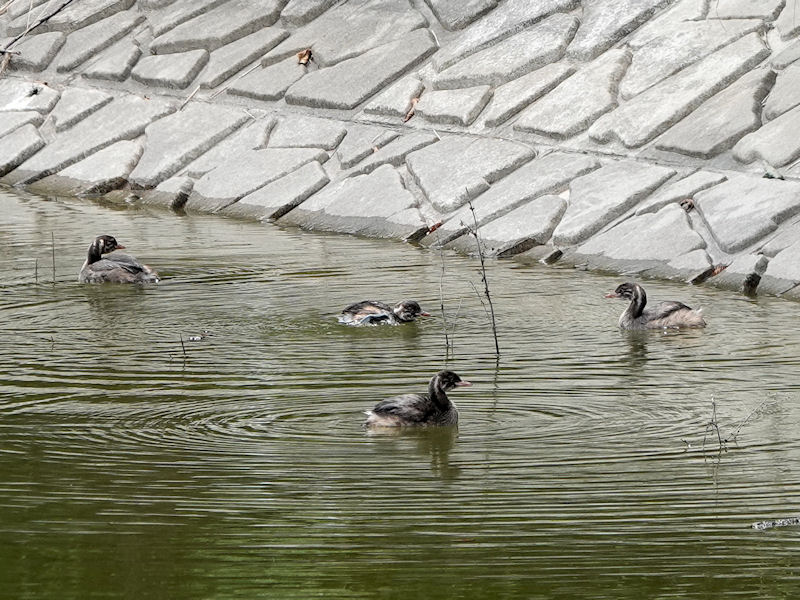 白樫池でカイツブリの親子連れと、幼鳥の群を観察した。