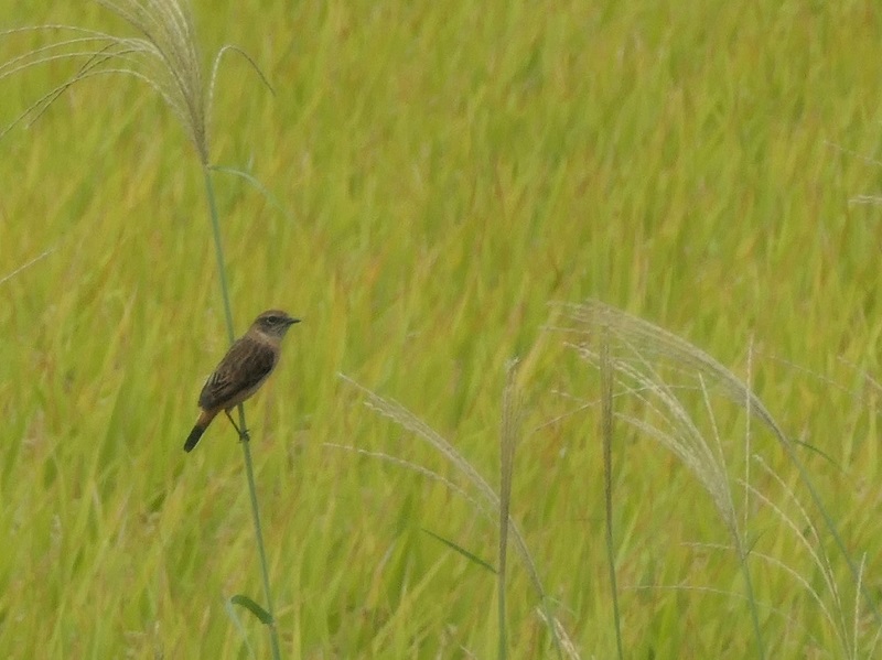 稲穂が実る水田付近では、旅鳥のノビタキが愛嬌を振りまいていた。
