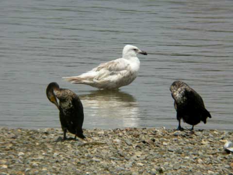今年は天候が不順だからか名物のカッコウが来ていない。おまけに先日の雨で予想以上に淀川は増水していて、水辺の鳥が非常に少ない。その中で姿を現してくれたのがチョウゲンボウ、ハヤブサ、オオタカ、トビ。他にオオセグロカモメ第1回夏羽もいたのはこの時期に珍しいのではないでしょうか?ホトトギスは1声鳴いたのみ。久しぶりに厳しい日差しの探鳥会でした。 オオセグロカモメ第1回夏羽らしき個体