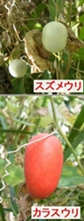 - 左:スズメウリ・カラスウリの実:8月ツバメの塒探鳥会で紹介したカラスウリの花、少し違う場所ですが、真っ赤な実をつけていました。それより小さい白い実のスズメウリの実も添付しています。