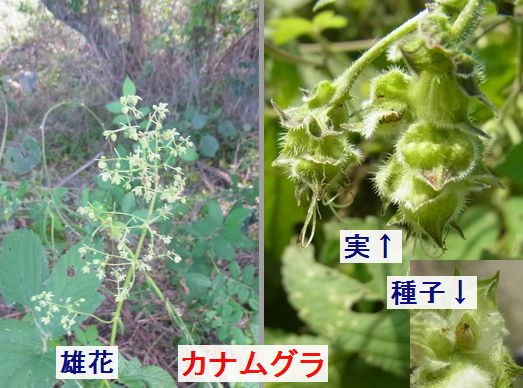 - 上左から3番目:カナムグラの実:万博でアトリ・マヒワ・カワラヒワといえば、第一にアキニレですが、今日はアトリがカナムグラの実から種子を食べていました。そこでどんな種子があるか、ホップと同じ形をした実を開いてみると、