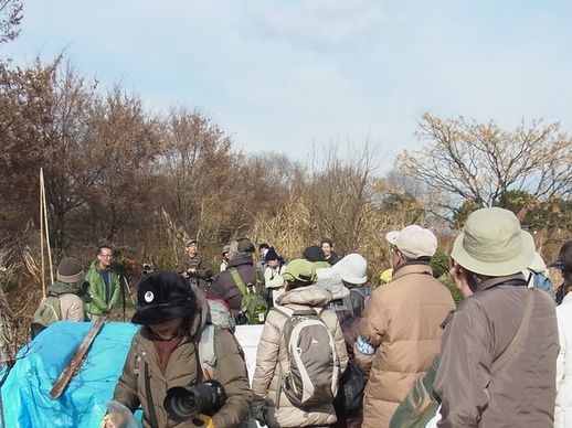 - 快晴の探鳥日和となり、モズやジョウビタキの声を聴きながらスタートした。