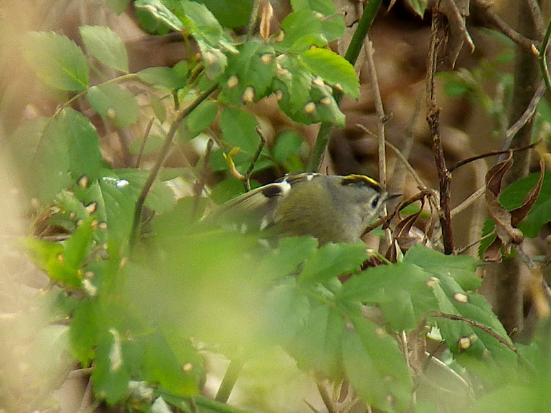 - 中でも歓声が上がったのは3回も出てきたキクイタダキ、センダンの林床に広がるノイバラの中でホバリング、距離1〜2mと望遠鏡はおろか双眼鏡にも入らぬ距離にまで近づいてきて、キクの花びらを肉眼でゆっくり見せてくれました。