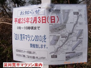 - 明日開催の寛平マラソンの案内、コース所々に貼られていました。