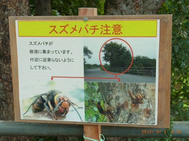 - スズメバチ注意の看板が2ヶ所、何れもアキニレの木でした。クヌギ・コナラなど好む木がないのにスズメバチが飛んでいたが、餌場はアキ ニレだったようです。