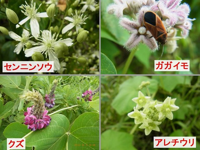 - この他、ヘクソカズラ、イシミカワ、カラスウリ、スズメウリなどのつる草の花が咲いていました。