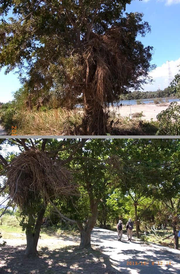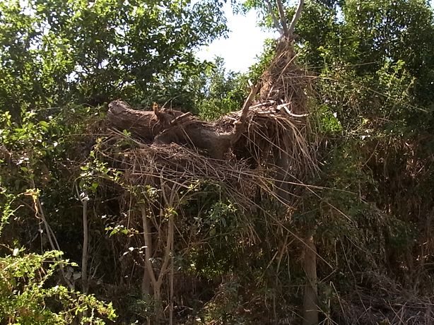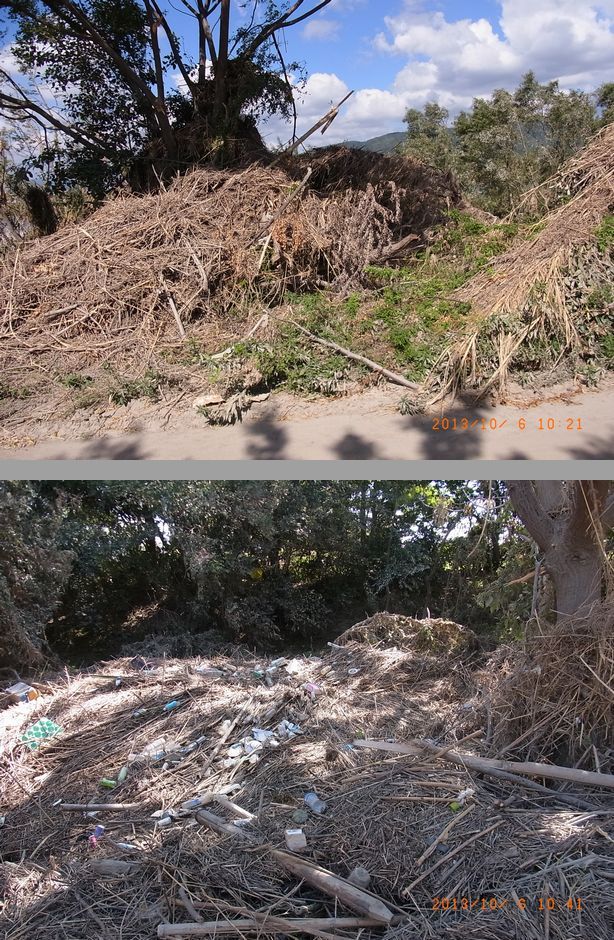 - 5〜7mの高さまで水に浸かったようでゴミが木の枝に残っていました(平さん撮影)