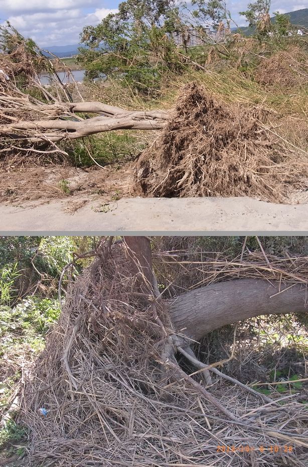 - 河川敷では倒れた木が多数ありました(平さん撮影)