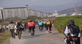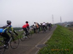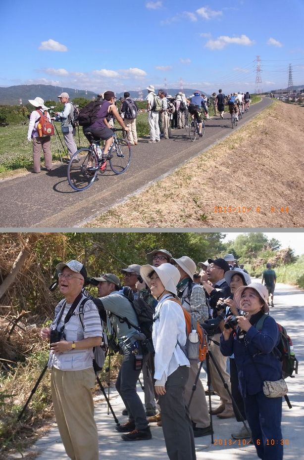 - ノビタキ観察中の堤防上サイクリング道で、10台ほどのサイクリング部隊が通過しました。