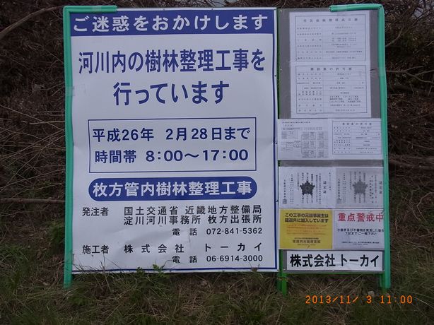 - 樹木伐採(河川内の樹林整理工事とのこと)の看板