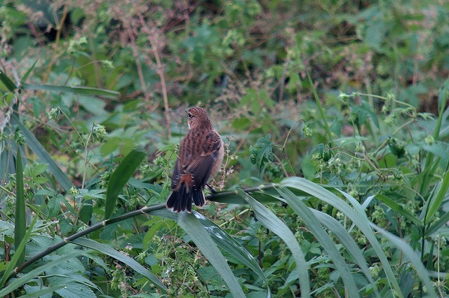 - そんな中で渡り鳥のノビタキはクズ原に、コサメビタキが雑木林に休んでおり、留鳥のカワラヒワ・エナガなどもでるなど鳥もよく観察できました