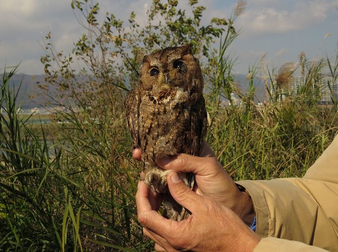 - 山野の小鳥が休む木が少ない中で、路上にオオコノハズクが落鳥しており、今日の一大トピックスとなりました。