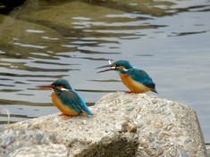 - カワセミのペアを観察中(撮影:平さん)