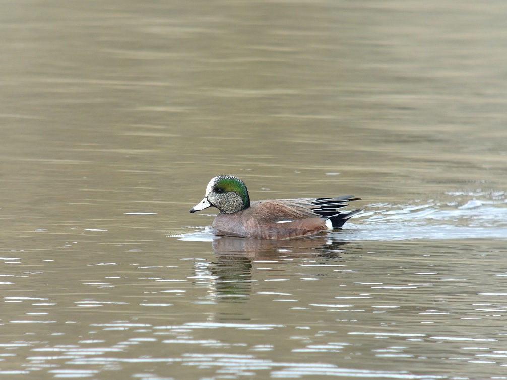 - 穂谷川合流点で、淀川本流に浮かぶコガモなどを見る