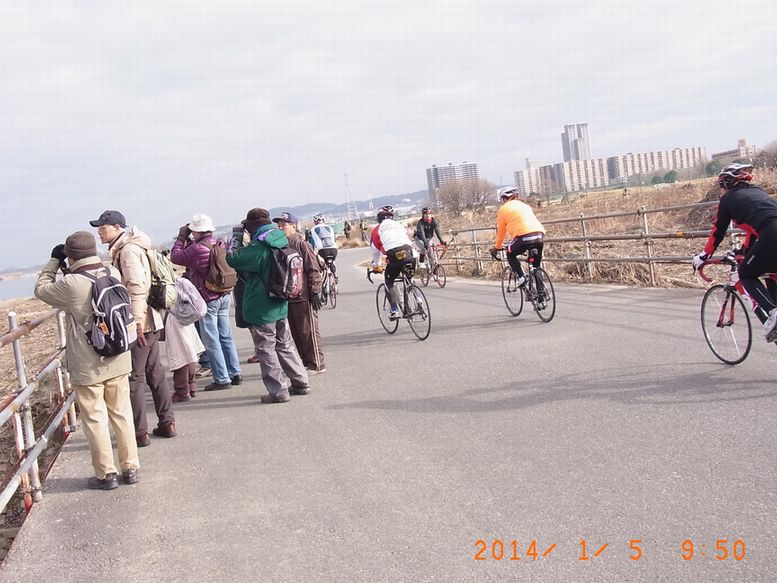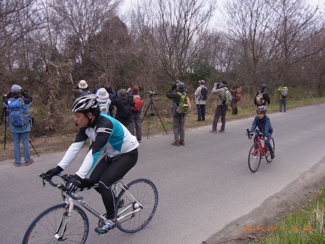 - 自転車部隊も始動(ツクシガモを見ている横を通り過ぎていきました(撮影:平さん))