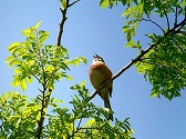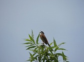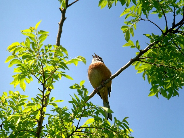 - ホオジロさえずり:ヤナギの梢でさえずる