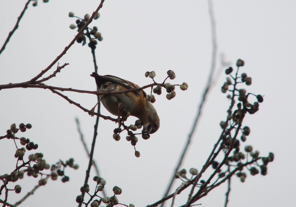 - 一方、木の実と鳥の関係ではナンキンハゼday、ハシボソカラス・シジュウカラ・コゲラ・アトリ・カワラヒワ・キジバトが群れでナンキンハゼの実をついばみに来ていた。