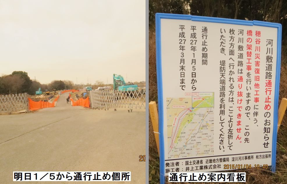 - 穂谷川橋改修工事で定例コースは3/31まで通行止めのため上流(橋本駅)コースとした。