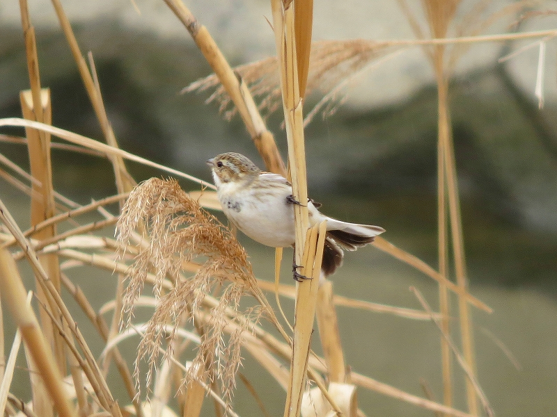 - 雨予報確率の高い中、探鳥会に参加して下さった方へのご褒美はオオジュリン、スタート地点で穂谷川のヨシ原に20羽ほどがメジロと一緒に群れており、下流にかけ何カ所かで出てくれた。