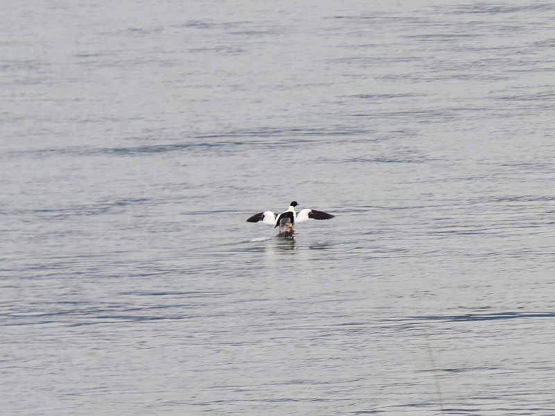 - 一方川面のカモは、牧野名物ともいえるカワアイサ8羽の他、スズガモが1羽出て種数こそ9種となったが、羽数二ケタ台はコガモ・マガモ・オカヨシガモのみだった。