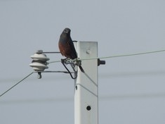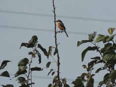 - 今年もそこでノビタキを2羽ゆっくり観察、その間に近くの送電線に止まったチョウゲンボウや上空を舞うオオタカ、そして飛び回るツバメ・コシアカツバメを観察した。